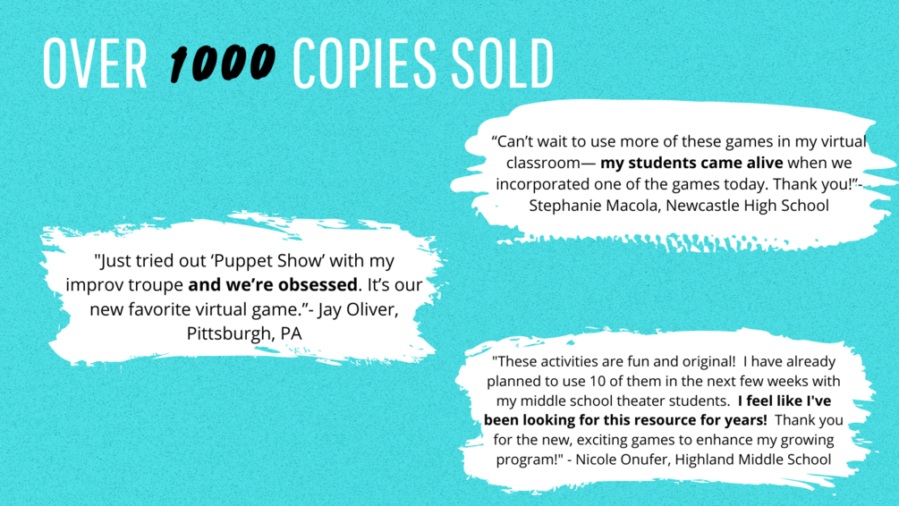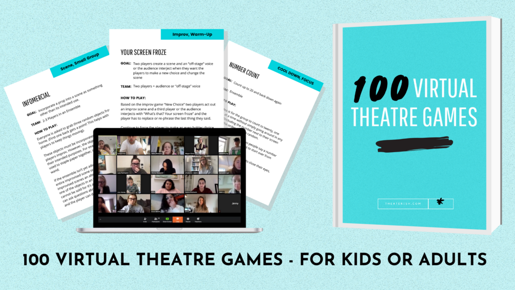 100 Virtual Theatre Games to play with your class, drama club, improv team, or theatre group.